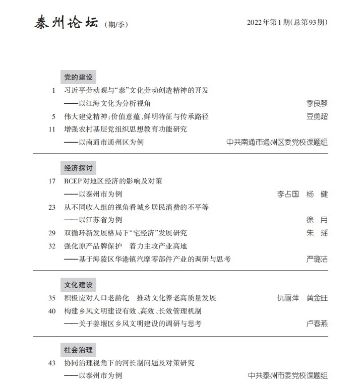 《泰州论坛》2022年第1期(总第93期)目录